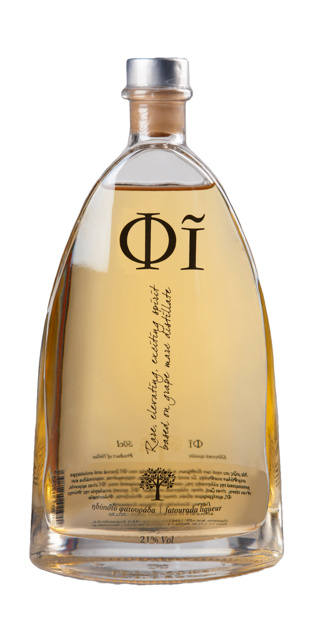 Φί, το χρώμα του χρυσαφί ανοιχτόχρωμο. Στη μύτη εκφράζει τα αρώματα σταφυλής από το εκλεκτό απόσταγμα, τα αρώματα των φρέσκων περγαμόντων και πορτοκαλιών και πίσω, αέρινη η νότα της κανέλας και το λιβάνι.